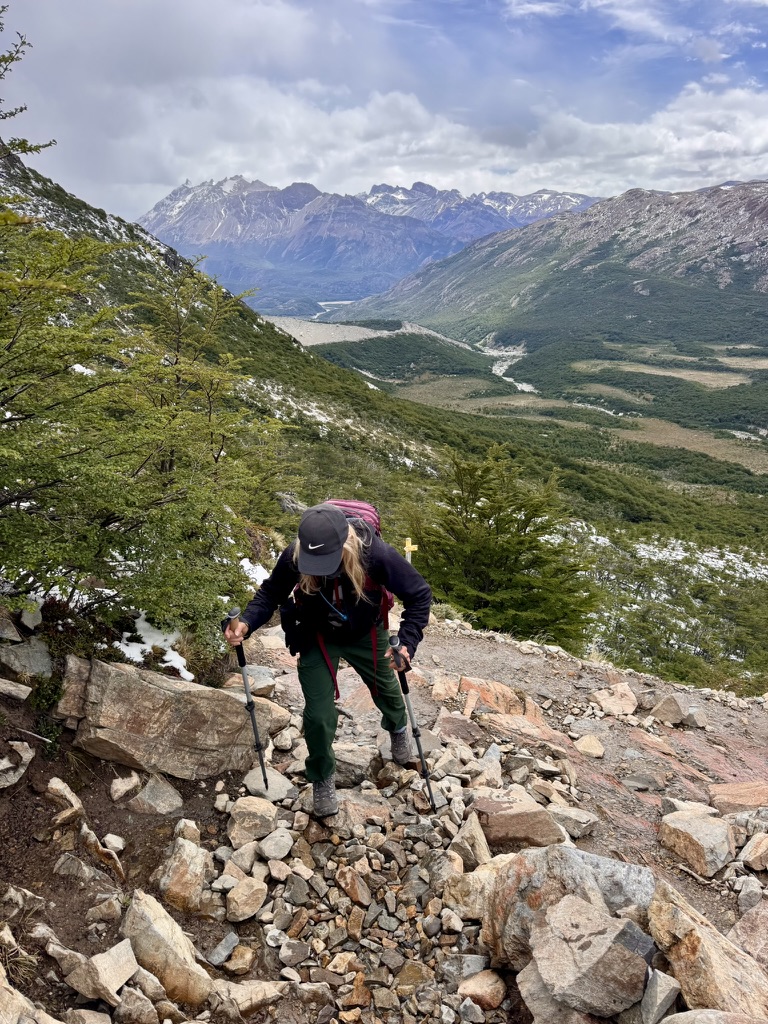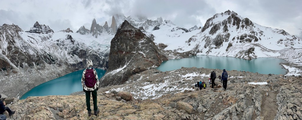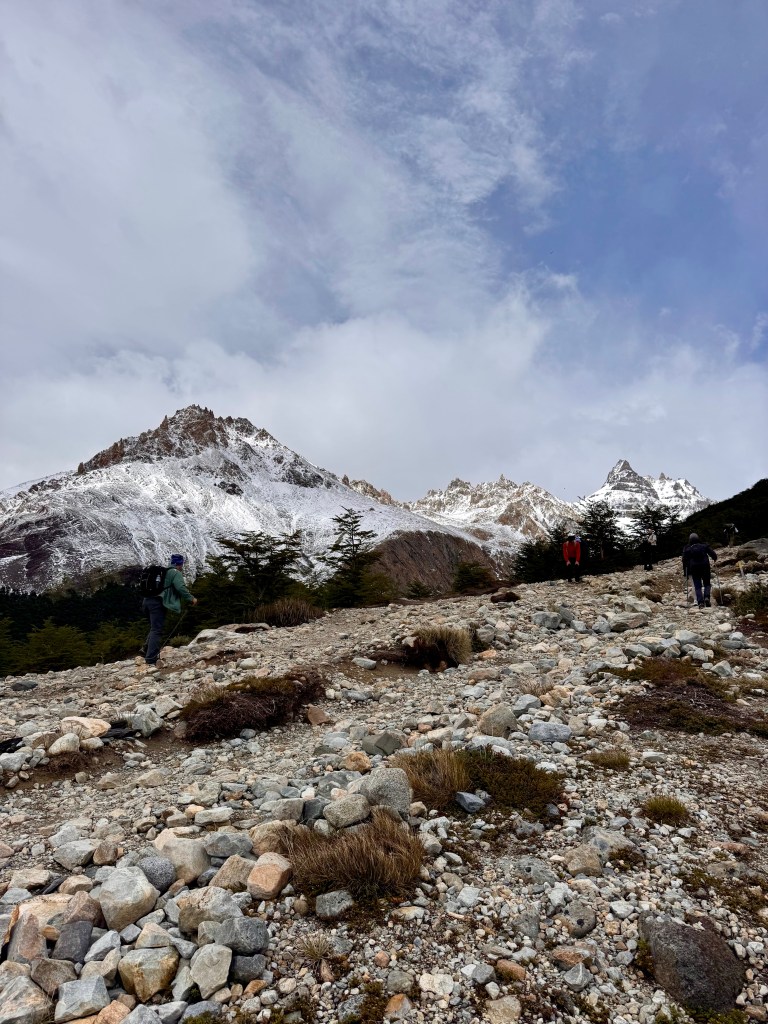 We hiked on a partly cloudy day, which actually gave Fitz Roy a dramatic, ever-changing look. The clouds rolled in and out, creating an iconic atmosphere that felt uniquely Patagonian. It wasn’t the bluebird postcard image — but it was stunning in its own way.
