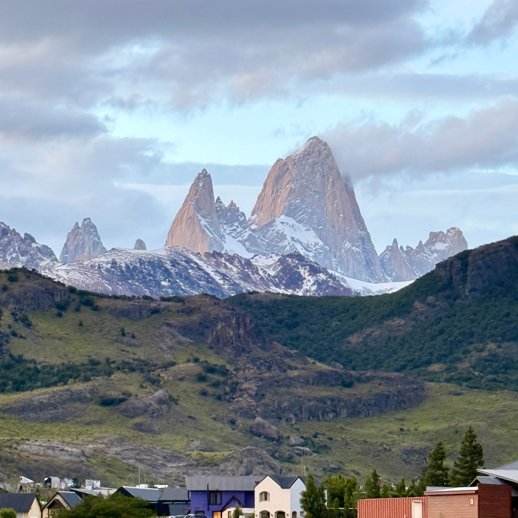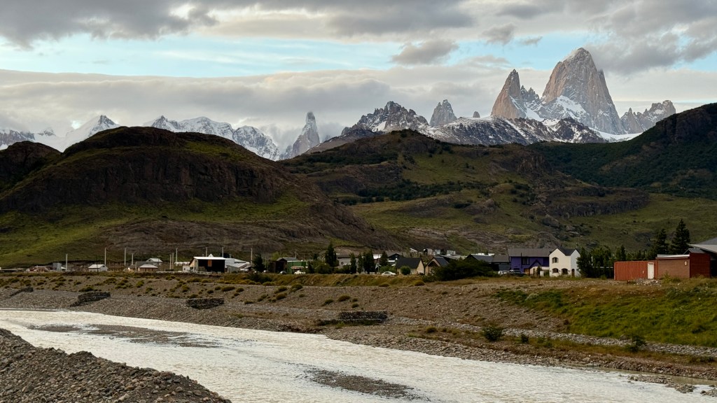 Fitz Roy is the kind of mountain that doesn’t just appear on one hike — it’s everywhere. From certain spots on the edge of town, near the river and even close to the bus depot, you’re already surrounded by dramatic views.