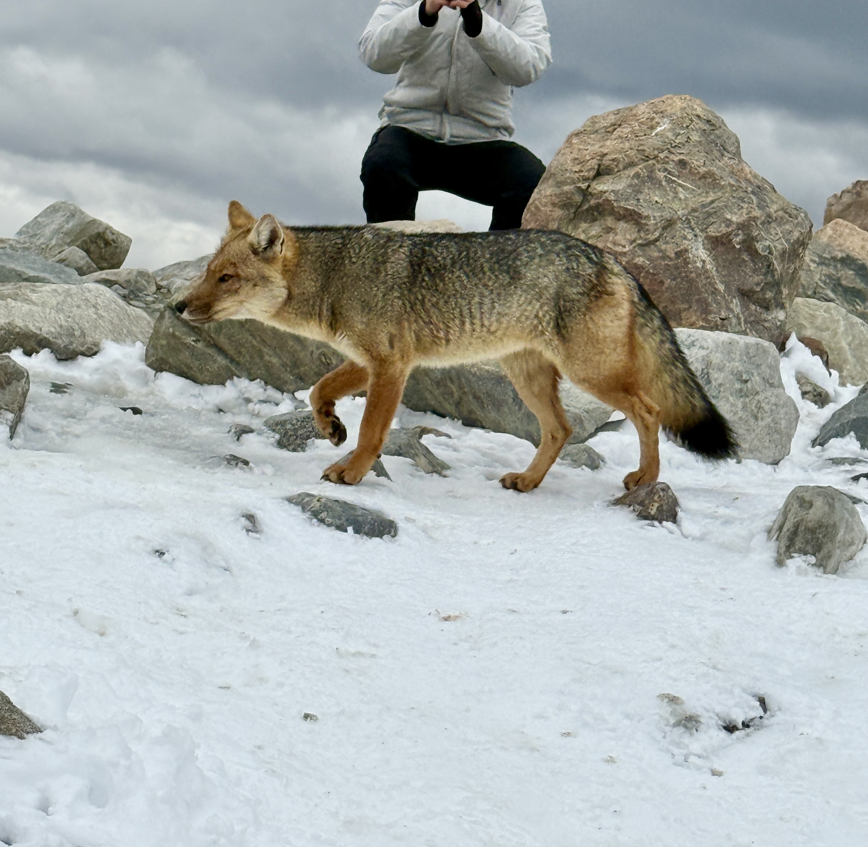 At the summit of Fitz Roy, we spotted a South American gray fox and a white-throated caracara by the stunning turquoise glacial lake —unforgettable rewards after that demanding climb. On the descent, a southern crested caracara appeared at Laguna Capri. Wildlife encounters, altitude, and raw Patagonian beauty wove through every step of the journey.