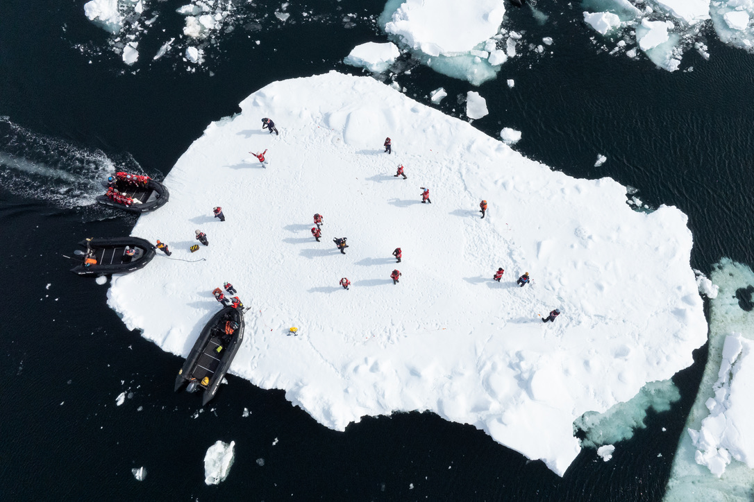 - A mix of land, sea ice, or wildlife cruising